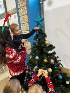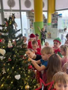 Dzieci z zaangażowaniem wchodziły w świąteczne aktywności, a sala wypełniła się ciepłem, śmiechem i dobrą energią. To wyjątkowy czas, który na długo pozostanie w naszej pamięci.