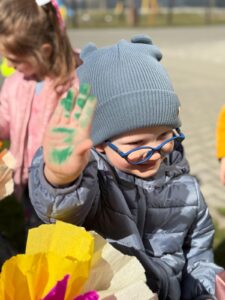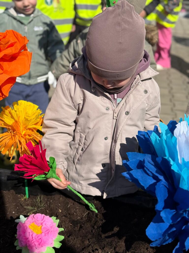 Pierwszy dzień wiosny w naszym przedszkolu był pełen radości, kolorów i muzyki! Dzieci z wielkim zaangażowaniem przygotowały się do tego wyjątkowego dnia, tworząc własnoręcznie piękne kwiaty z bibuły i papieru. Każde dziecko przyniosło swój wyjątkowy, kolorowy kwiat, który dodał uroku naszej wiosennej paradzie.