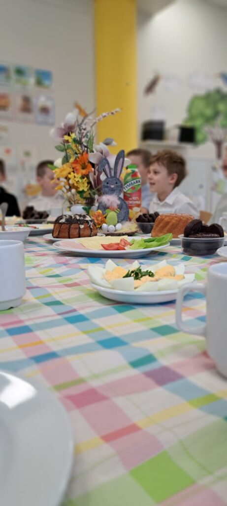 Dziś w naszym przedszkolu odbyło się wyjątkowe, pełne radości i świątecznej atmosfery śniadanie wielkanocne✨ Na stole nie zabrakło tradycyjnych przysmaków – były jajka, babka oraz wiele innych pyszności, które dzieci z apetytem degustowały, ucząc się przy tym prawidłowego zachowania przy stole oraz czerpiąc radość ze wspólnego spędzania czasu.